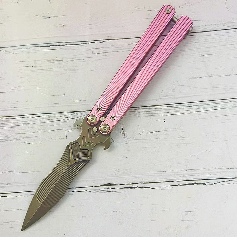 Butterfly knife unsharpened aluminum handle practice training knife folding hand fancy knife