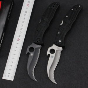 The Full Tooth Karambit Folding Claw Knife is a portable, tactical tool designed for outdoor enthusiasts and everyday carry (EDC). Its full tooth blade ensures impressive cutting performance, while the foldable design makes it incredibly easy to carry wherever you go.