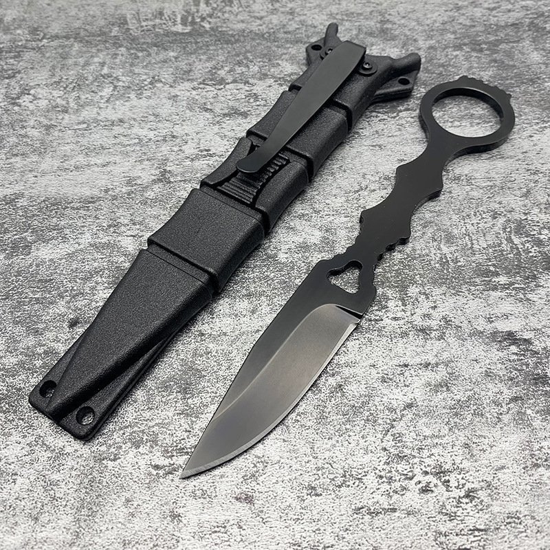 Camping outdoor survival knife portable knife high hardness straight knife sharp survival knife integrated keel high hardness tactical knife–Black-1